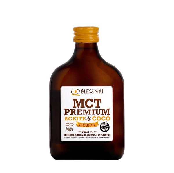 Aceite de coco liquido MCT premium, ideal para cocinar y como suplemento energetico saludable.- SIN GLUTEN