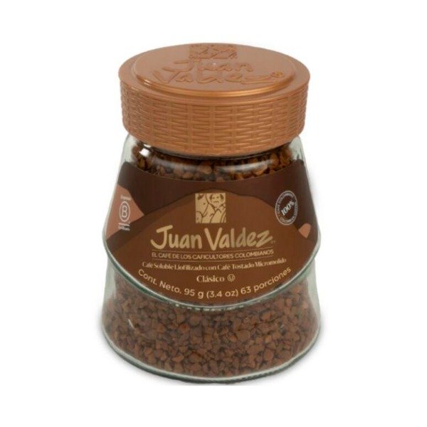 Cafe soluble liofilizado con cafe tostado clasico x 95g - Juan Valdez, sabor autentico y aroma intenso en cada taza.