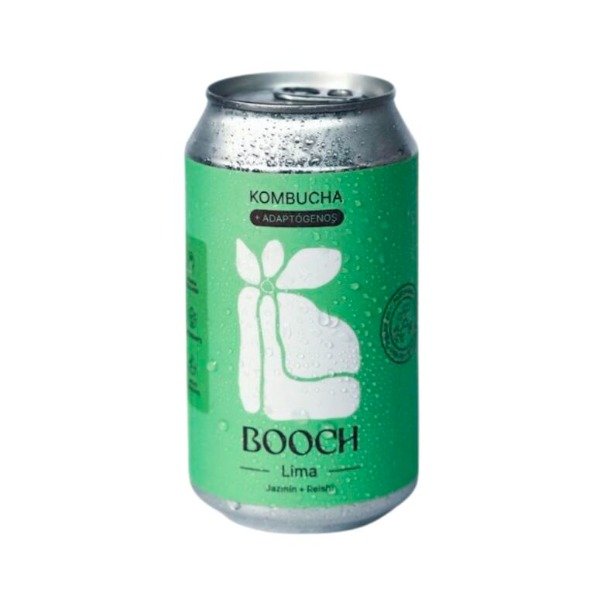 Kombucha adaptogenos lima jazmin & reishi de Booch, una bebida refrescante y funcional con beneficios naturales.