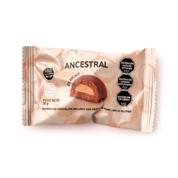 Bombon de chocolate relleno de mani x 30g - Ancestral, clasico irresistible con relleno cremoso de mani.- SIN GLUTEN