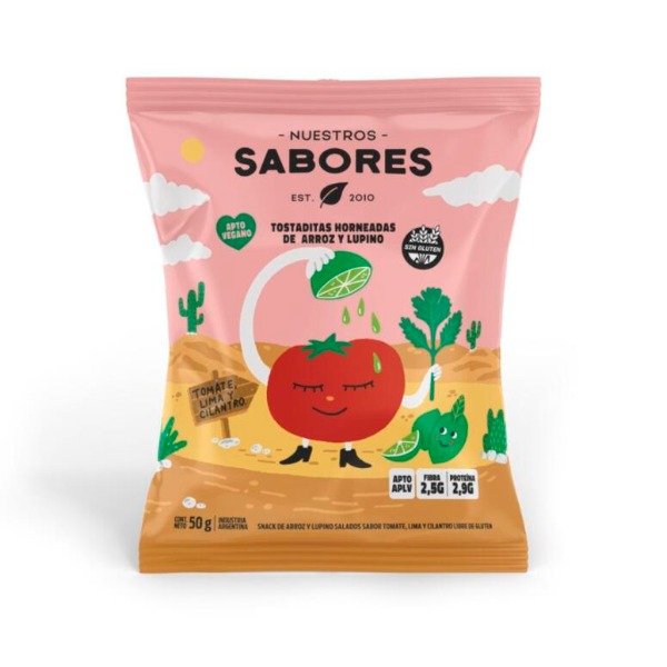 Tostadas de Arroz y Lupino sabor Tomate, Lima y Cilantro x 50g - Nuestros Sabores - Tostadas de arroz y lupino con una mezcla fresca de tomate, lima y cilantro.- SIN GLUTEN
