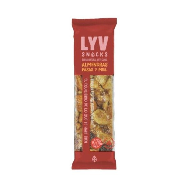 Barra de Almendras, Pasas y Miel de 30g, un snack energetico y saludable para disfrutar en cualquier momento del dia.- SIN GLUTEN