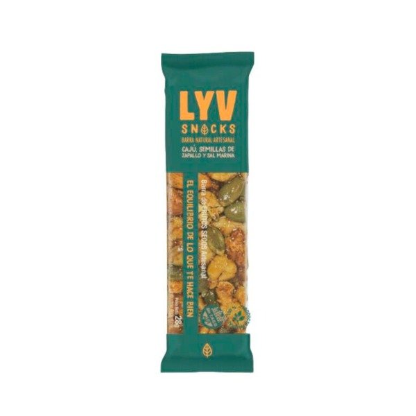 Barra de caju, semillas de zapallo y sal marina de 28g, un snack saludable y energizante.- SIN GLUTEN