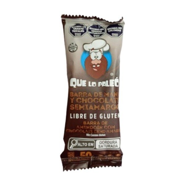Barra de Mani y Chocolate Semiamargo x 50g - Que Lo Paleo - Deliciosa barra elaborada con mani y chocolate semiamargo, ideal para un snack saludable y lleno de sabor.- SIN GLUTEN