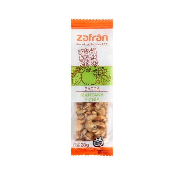 Barra de manzana y chia de 28g, un snack saludable y delicioso con una combinacion perfecta de manzana y chia.- SIN GLUTEN