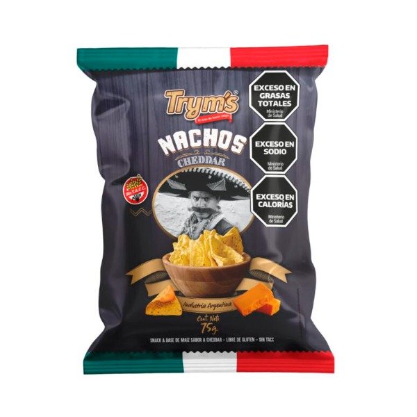 Nachos con cheddar x 75g - Tryms, sabor intenso a queso en un snack irresistible.- SIN GLUTEN
