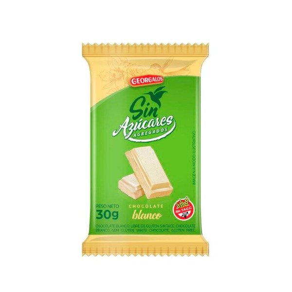 Chocolate blanco de 30g, un dulce delicioso para disfrutar en cualquier momento.- SIN GLUTEN