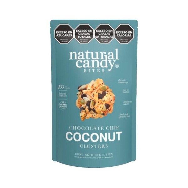 Chocolate chips coconut clusters Natural Candy 100g. Bocaditos crocantes de coco con chips de chocolate. Snack natural y sin tacc.