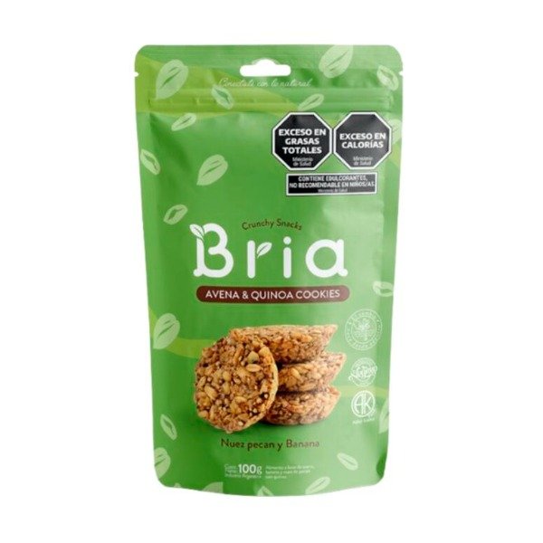 Cookies de avena quinoa nuez pecan y banana de Bria, una opcion sabrosa y natural para acompanar tus bebidas favoritas.