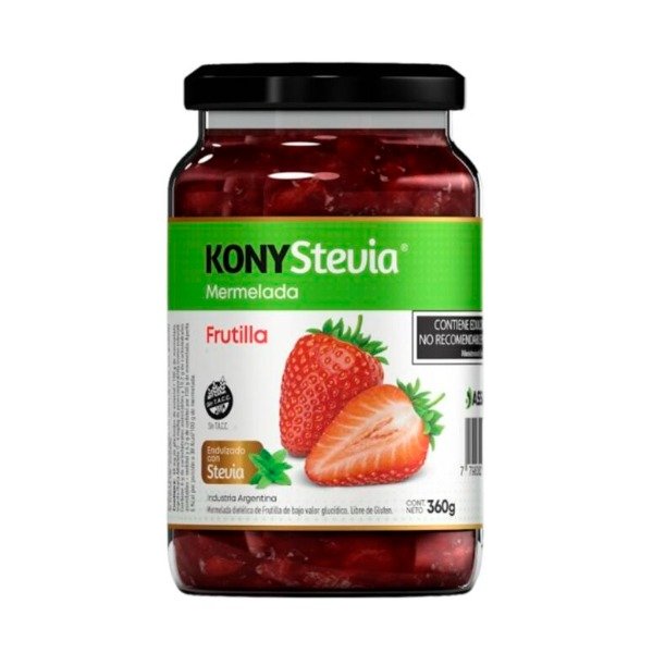 Mermelada de frutilla con stevia de 360g, perfecta para quienes buscan un toque dulce y natural sin azucar anadida.- SIN GLUTEN