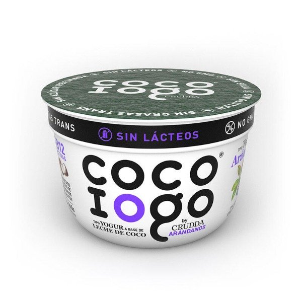 Yogurt a base de coco arandanos Iogo de 160g, cremoso y delicioso, ideal para una opcion saludable.- SIN GLUTEN